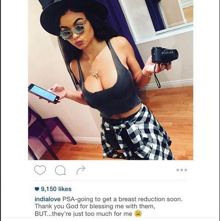 Popular rapper, The Game's eighteen year old girlfriend India Love Westbrooks has taken to Instagram to announce her upcoming breast reduction surgery because it seems like carrying the breast around has become too much stress for her.
